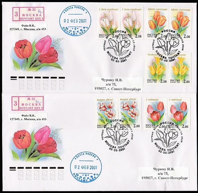 2 КПД. Флора. Тюльпаны, 02.02.2001 год, Москва. почтамт, заказные, прошли почту