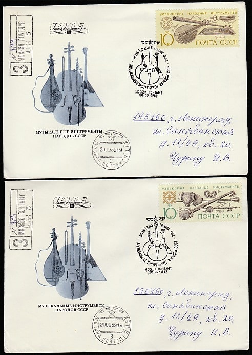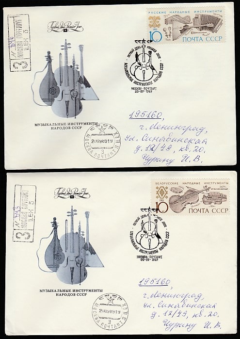 4 КПД. Музыкальные инструменты народов СССР, 20.09.1989 год, Москва, почтамт, заказные, прошли почту
