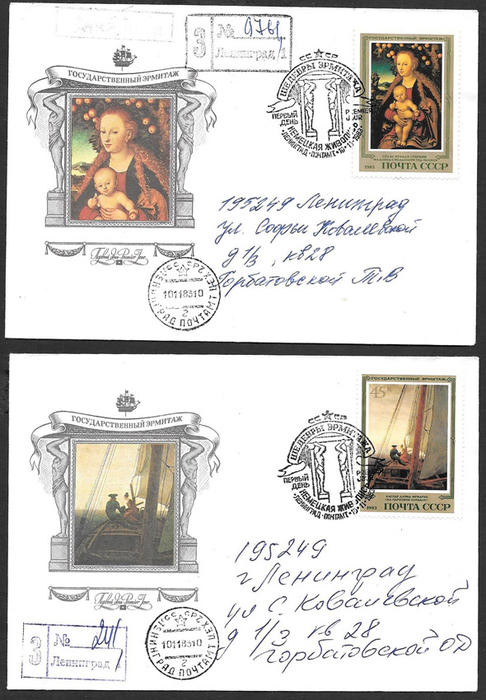 5 КПД со спецгашением - Шедевры Эрмитажа. Немецкая живопись. 10.11.1983, почта. Ленинград