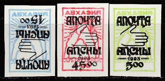 Абхазия 1993 год. Стандартный выпуск. НДП нового номинала, 3 б/зубц. марки.