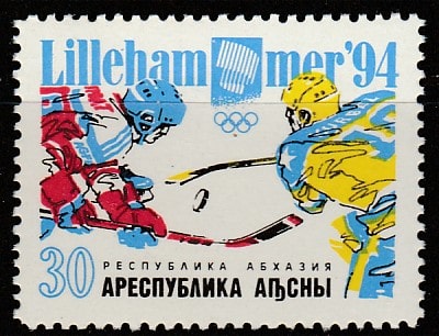 Абхазия 1994 год. Зимние Олимпийские игры в Лиллехаммере. Хоккей, 1 марка.