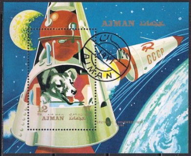 Аджман 1971 год. Советские космические исследования. Блок (гашеный)