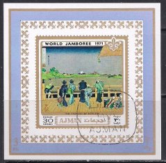 Аджман 1971 год. Живопись Кацусика Хокусаи. Гашеный блок без зубцов