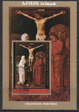 Аджман 1972 год. Полотно Ван дер Гуса "Распятие". Гашеный блок без зубцов