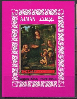 Аджман 1972 год. Рождественская живопись. Гашеный блок