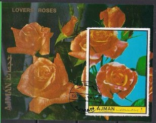 Аджман 1972 год. Розы. Гашеный блок без зубцов