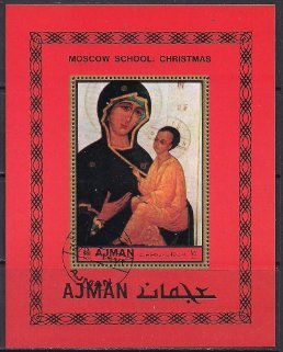 Аджман 1972 год. Русская живопись. Рождество. Гашеный блок