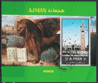 Аджман 1972 год. Венеция. Гашеный блок
