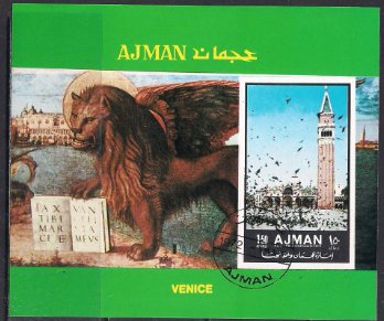 Аджман 1972 год. Венеция. Гашеный блок без зубцов
