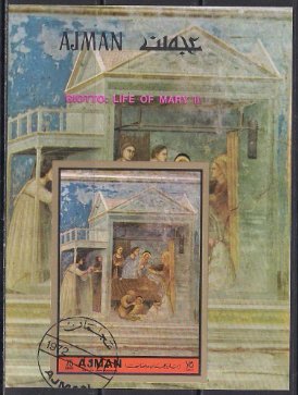 Аджман 1972 год. Живопись Джотто. Гашеный блок без зубцов
