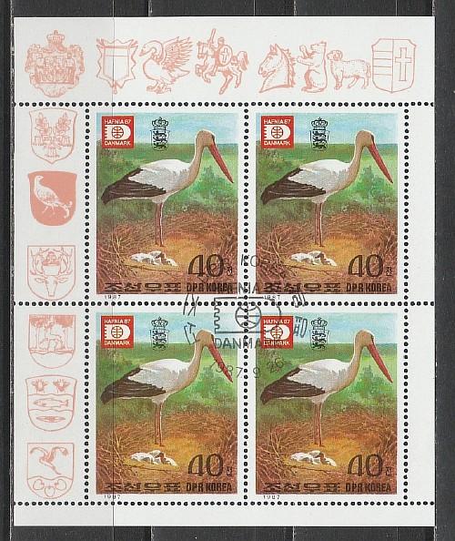 Аист, Спецгашение, КНДР 1987 год, малый лист