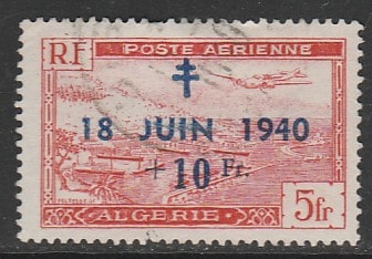 Алжир 1948 год. VIII годовщина вызова генерала де Голля, 1 марка с надпечаткой (гашёная) (2,2/3)