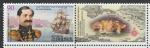 Армения 1996 год. 200 лет со дня рождения русского адмирала Лазаря Серебрякова, 1 марка с купоном. (1 марка из трёх)