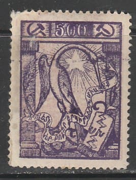 Армения (АССР) 1922 год. Стандарт. Армянская культура, ном. 500 р., 1 марка (наклейка)