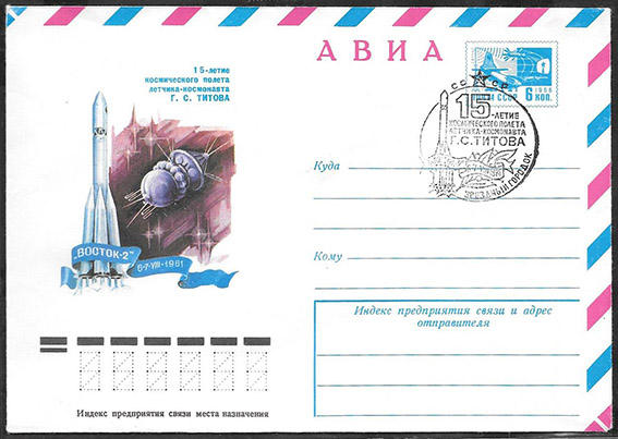 АВИА ХМК со спецгашением - 15-летие космического полета летчика-космонавта Г.С. Титова. Звездный городок. 1976 год (+1Ю)