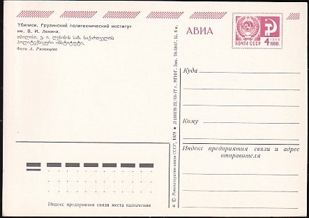Авиа ПК "Тбилиси. Грузинский политехнический институт им В.И. Ленина". Выпуск 22.11.1977 год