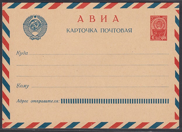 Авиа почтовая карточка, 4 копейки, 1961 год