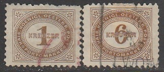Австрия 1894/1895 год. Номинал в поперечном овале, валюта гульден, 2 доплатные марки из серии (гашёные)