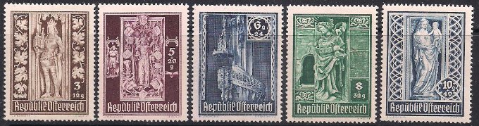 Австрия 1946 год. Реконструкция собора святого Стефана. Неполная серия (5 марок)