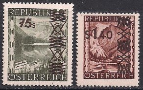 Австрия 1947 год. Горы. 2 марки с наклейкой