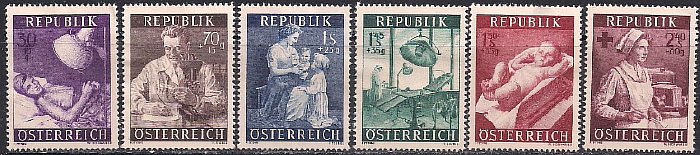 Австрия 1954 год. Здравоохранение. 6 марок с наклейкой