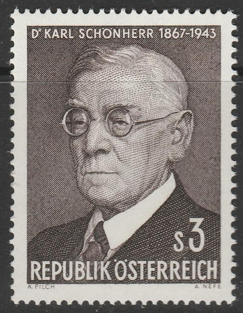 Австрия 1967 год. 100 лет со дня рождения австрийского писателя Карла Шенхерра. 1 марка