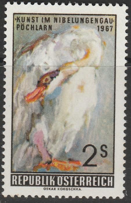 Австрия 1967 год. Лебедь. Выставка "Искусство Нибелунгов". 1 марка