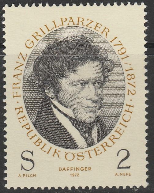 Австрия 1972 год. Портрет австрийского поэта и драматурга Франца Грильпарцера. 1 марка