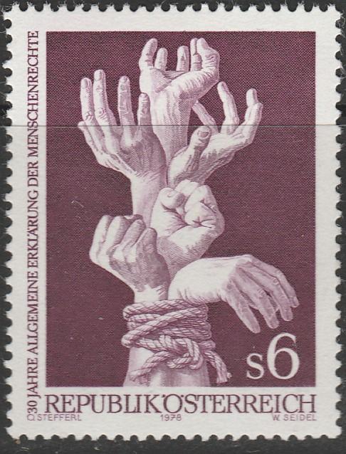 Австрия 1978 год. Связанные руки. 30 лет Всеобщей декларации прав человека. 1 марка