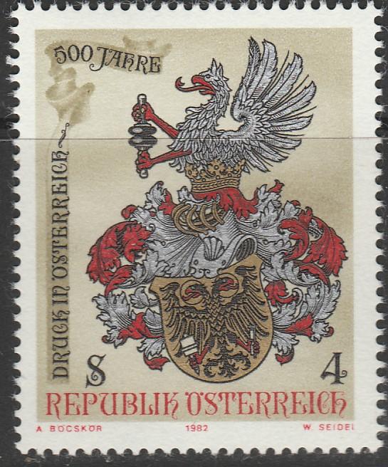 Австрия 1982 год. Герб книгопечатников. 500 лет книгопечатанию в Австрии. 1 марка