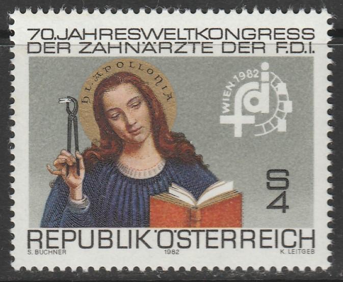 Австрия 1982 год. Святая, покровительница стоматологов. Конгресс стоматологов в Вене. Эмблема. 1 марка
