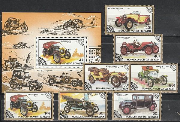 Автомобили, Монголия 1986 год, серия 7 марок + блок