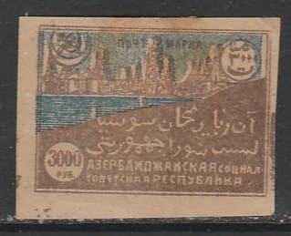 Азербайджан 1921 год. Стандарт. Нефтяное месторождение Биби-Эйбат, ном. 3000 руб., 1 марка (наклейка)