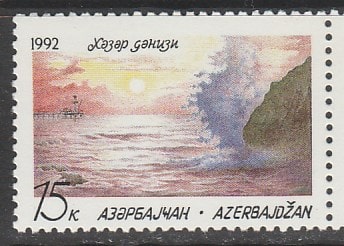 Азербайджан 1992 год. Охрана природы. Буровая вышка у побережья Каспийского моря, 1 марка.