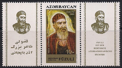 Азербайджан 1993 год. 500 лет со дня рождения поэта Физули. 1 марка с купонами