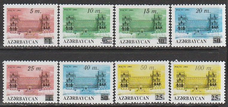 Азербайджан 1994 год. Стандарт. Дом Правительства в Баку, НДП, 8 марок.