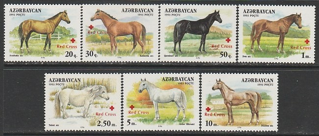 Азербайджан 1997 год. Лошади. НДП: Красный Крест, 7 марок.
