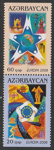 Азербайджан 2006 год. Европа. Интеграция, пара марок с частичной перфорацией (D II)