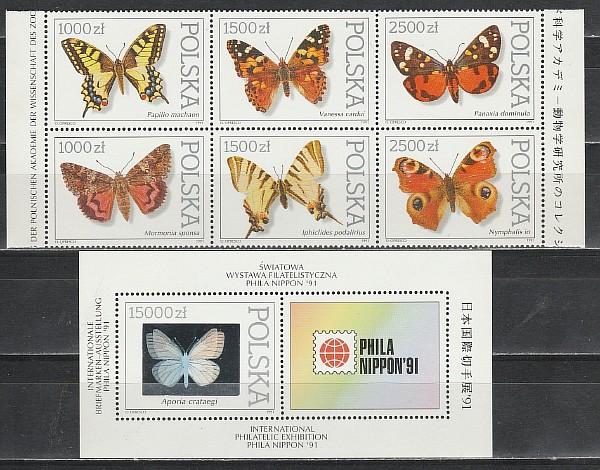 Бабочки, Польша 1991 год, шестиблок. и блок