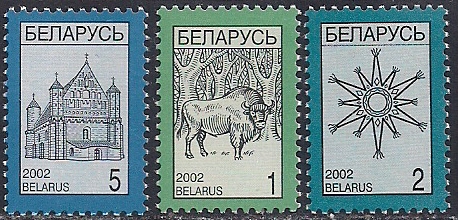 Беларусь 2002 год. Снежинка, зубр, ратуша. 4-й стандартный выпуск. 3 марки