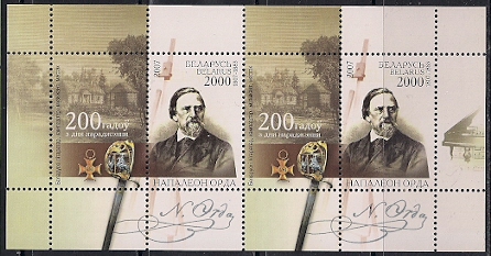 Беларусь 2007 год. 200 лет со дня рождения литератора и музыканта Наполеона Орды. 1 блок
