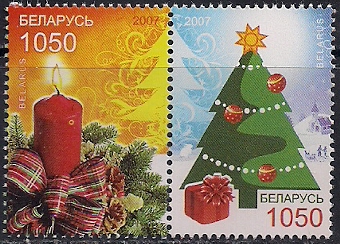 Беларусь 2007 год. С Новым 2008 годом! Свечка и елка. 2 марки