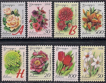 Беларусь 2008 год. 12-й стандарт. Садовые цветы. 8 марок. Простая