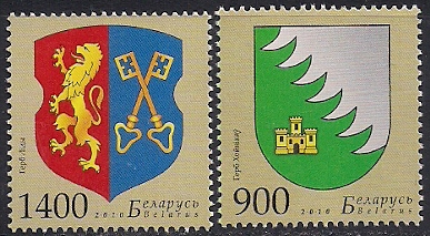 Беларусь 2010 год. Гербы городов Хойники и Лида. 2 марки