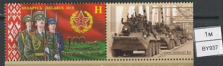 Беларусь 2018 год. 100 лет Вооружённым Силам Беларуси, 1 марка с купоном