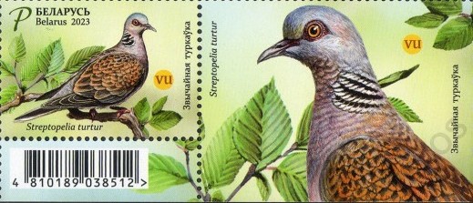Беларусь 2023 год. Птицы Беларуси. Обыкновенная горлица. Марка с купоном.