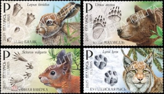 Беларусь 2025 год. Следы зверей (BY1410). 4 марки