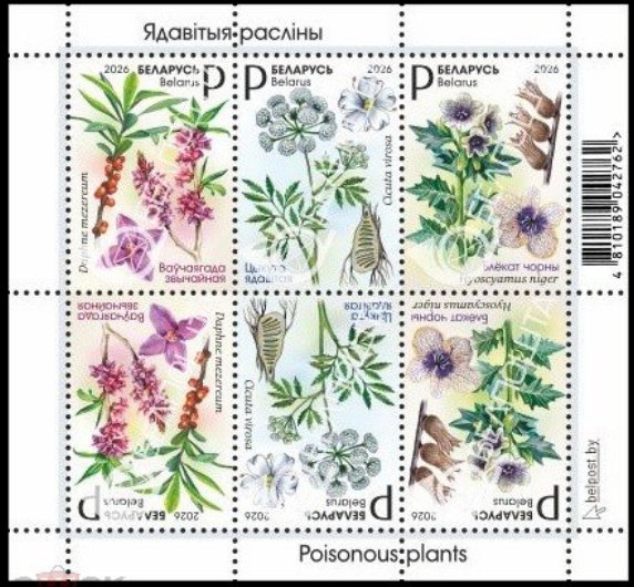 Беларусь 2026 год. Ядовитые растения (BY1422). Блок