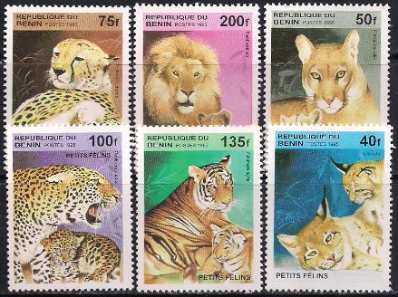 Бенин 1995 год. Хищники семейства кошачьих. 6 марок