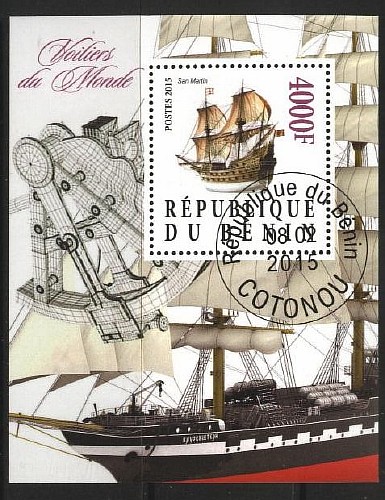 Бенин 2015 год. Парусные корабли. Гашеный блок